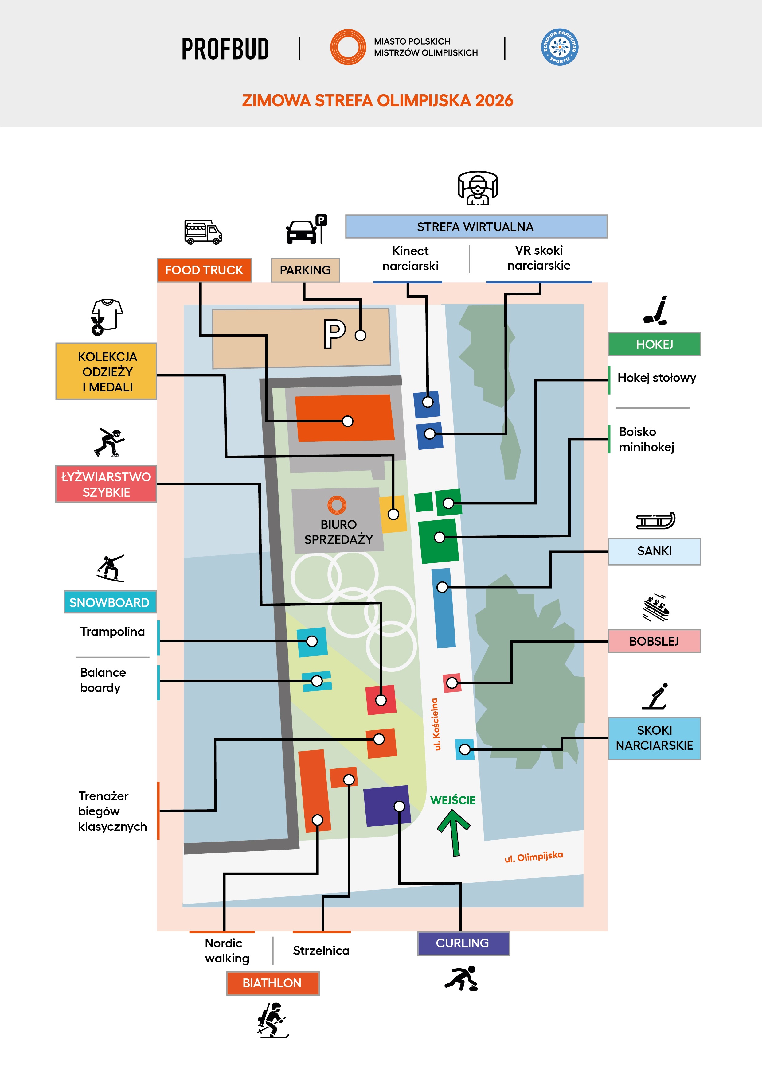 Zimowa Strefa Olimpijska odbywa się w ramach dni otwartych w Mieście Polskich Mistrzów Olimpijskich, inwestycji mieszkaniowej realizowanej przez PROFBUD. Projekt powstaje w bezpośrednim sąsiedztwie warszawskiego Ursynowa, a jego współinwestorem jest Robert Lewandowski. Inwestycja poza wysokim standardem mieszkaniowym, będzie posiadała rozbudowaną infrastrukturą sportową, z licznymi, symbolicznymi nawiązaniami do sportowych historii poprzez takie miejsca jak Aleja Polskich Mistrzów Olimpijskich z odbitymi w mosiądzu dłońmi wybitnych polskich sportowców czy „mila olimpijska” - trasa o długości niemal dwóch kilometrów, będącą nie tylko przestrzenią rekreacyjną, ale również formą edukacyjnej podróży przypominającej znakomite starty reprezentantów Polski.